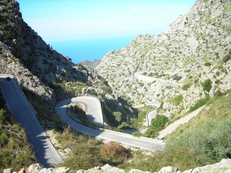 Die spektakulärste Straße Mallorcas führt hierher: Die Ma-2141 windet sich in über 14 Kilometern mit rund 800 Höhenmetern vom Kloster Lluc hinunter ans Meer. Legendär ist die „Krawatte des Krawattenmachers“ – eine 270°-Haarnadelkurve namens „Nus de sa Corbata“, die nicht nur Autofahrer, sondern auch Radprofis begeistert.